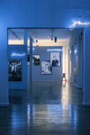 Die Unterschriften der prominenten Schriftsteller, Wissenschaftler und weiterer Erfinder strahlen in neonblauem Licht und beleuchten die Porträts der in Vergessenheit geratenen Bürgern von Montbéliard. Eine beeindruckende Idee.