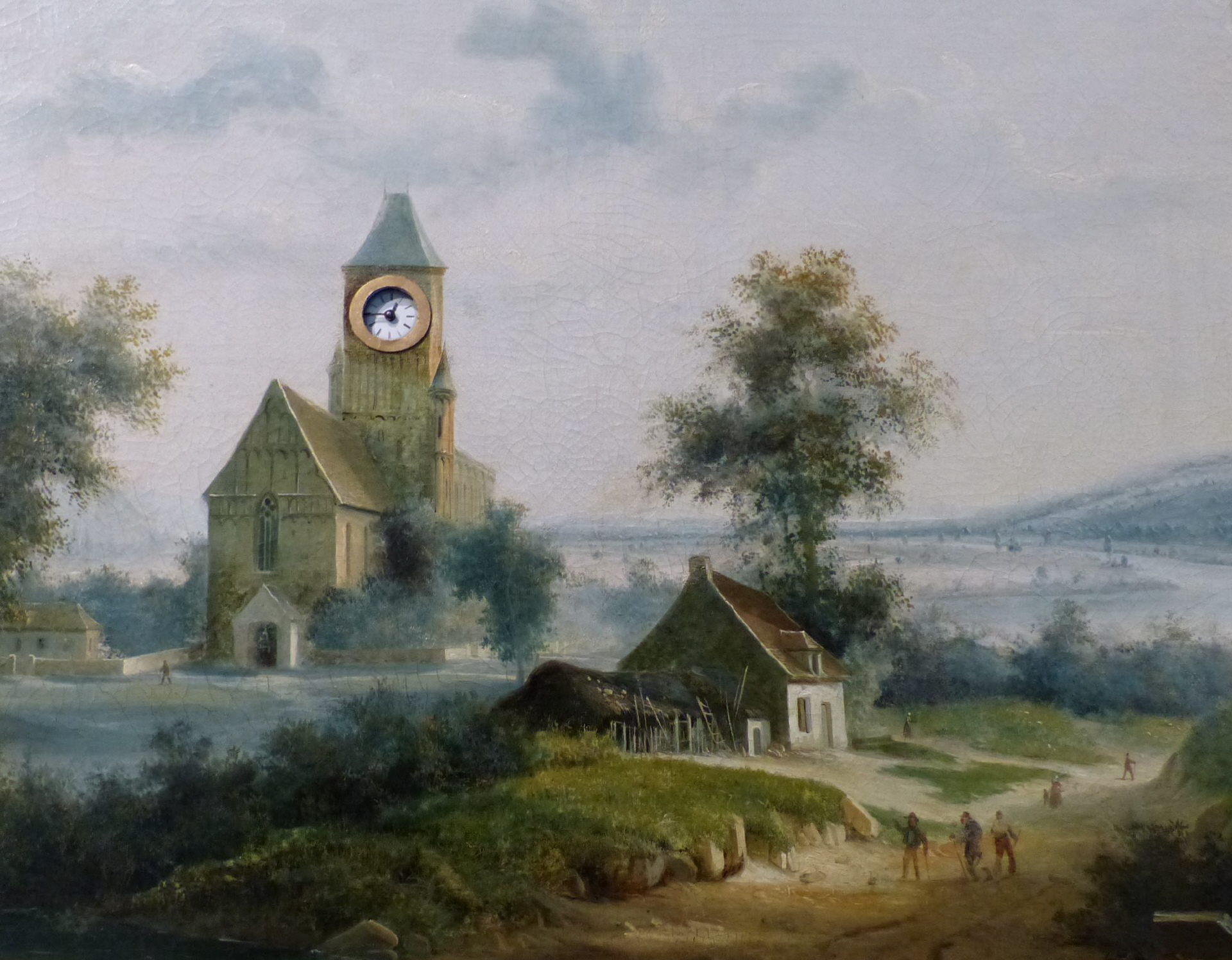Hier wurden Feste der Schöpferlust, Genialität und Phantasie gefeiert, in winzigen wie riesigen Uhrgehäusen. Außerdem ist im 4. Stockwerk ein 13 Meter langes Pendel von Foucault eingebaut, dass den Beweis der Erdrotation liefert. Der Besucher wird eingeladen, zuzusehen, wie sich die Erde dreht. Im Bild links: Ausschnitt aus einem Ölgemälde mit Uhr