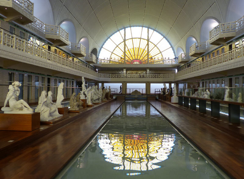 Die UNESCO hat damit wie die Schriften von Emile Zola, an die ursprüngliche Geschichte der Arbeiter erinnert, die in der Welt von heute aus den Minen und Textilfabriken verschwunden sind. Zu dieser Geschichte gehört auch das Schwimmbad im Roubaix im Art Deco Stil der 30er Jahre, das recht gut die Atmosphäre der vergangenen Epoche vermittelt. Es befand sich auf Fabrikgelände direkt neben den Fabrikgebäuden und wurde errichtet, weil der überwiegende Teil der kleinen Häuser der Textil-Arbeiter und ihrer Familien ohne Badezimmer und fließendes Wasser auskommen musste.