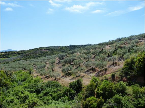 Der Weg durch Olivenhaine zum Meer