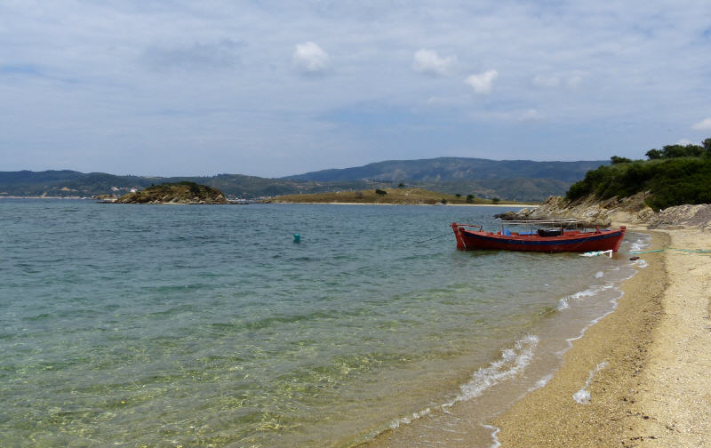 Neben großen langen Stränden sind hier auch viele kleine romantische Buchten zu finden. Die Lieblings-Bucht von Wasili heißt Tourkolimano. In der Vorsaison jetzt im Mai sind sie noch menschenleer. Die Urlauber können auch ein kleines Boot mieten und selbst zu den phantastischen einsamen Stränden, den kleinen Restaurants und Strandbars der Insel schippern.