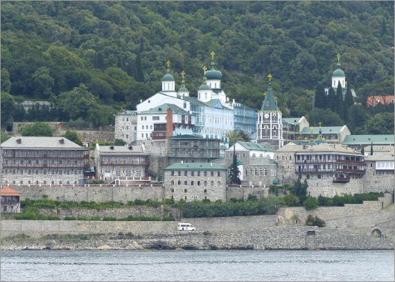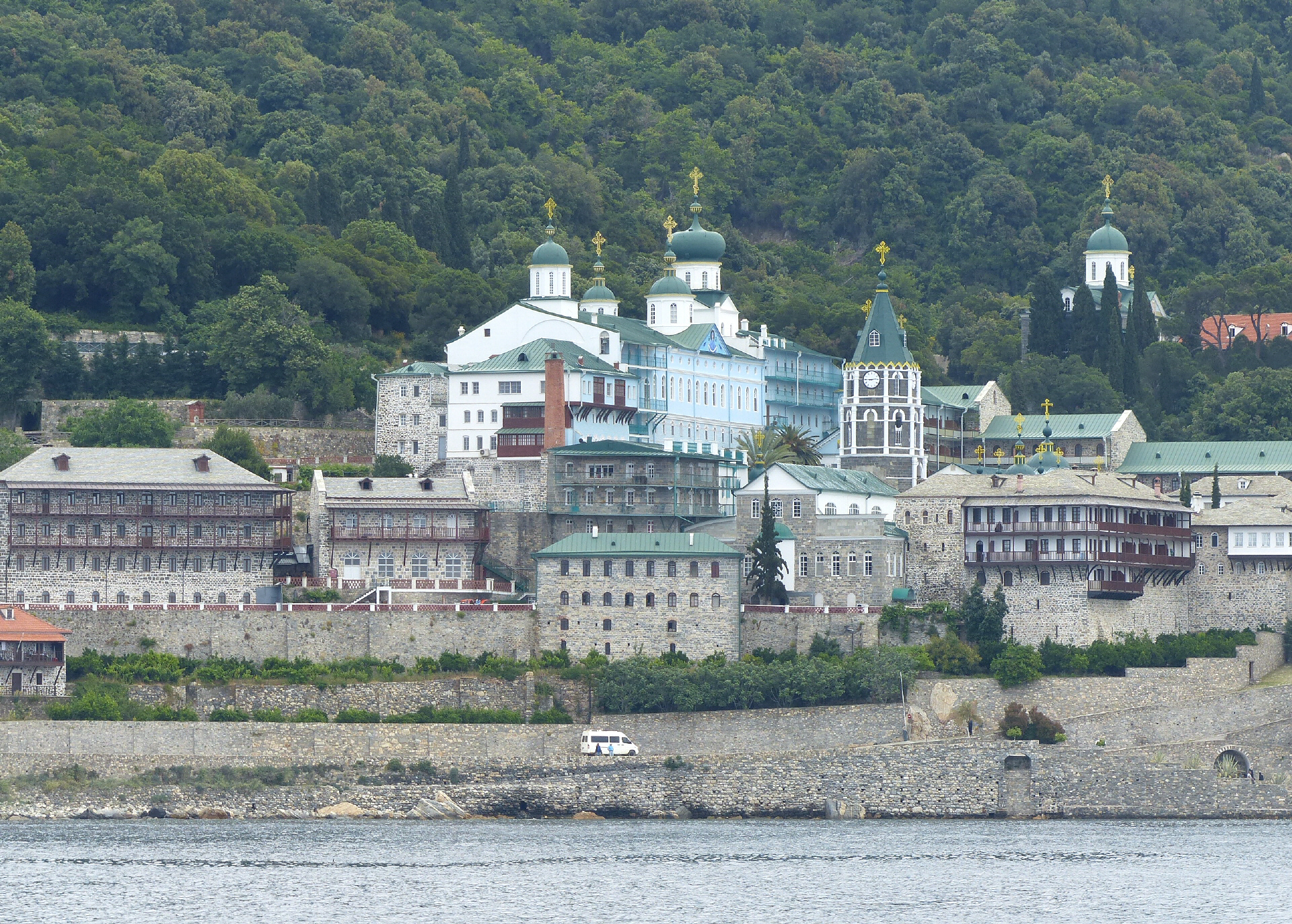 An der Schiffs-Reling haben sich die Urlaubs-Bildermacher versammelt, um die imposanten Klosterbauten für das Fotoalbum zu Hause aufzunehmen, darunter selbstverständlich auch einige Frauen. Der Zutritt zur Insel ist für alles Weibliche streng verboten, doch auf dem Schiff sind sie berechtigt, sich bis auf etwa 200 Meter zu nähern. Es ist noch nicht so lange her, da durfte die orthodoxe Welt mit dem heiligen Berg Athos auch nur vom Bart tragenden Mann betreten werden. Doch diese Regel wurde von den orthodoxen Glaubensbrüdern inzwischen abrasiert.