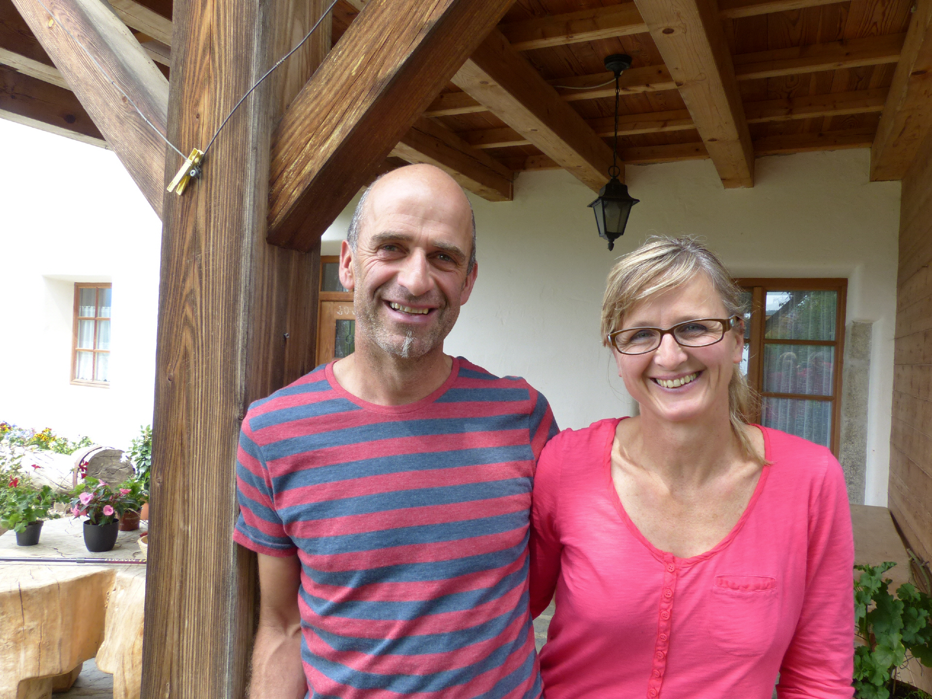 „Der Joghurt ist bei unseren Gästen der Renner“, sagt stolz Anna Jocher, die wöchentlich bis zu 20 Liter davon für ihre Urlauber herstellt und auch im Hofladen verkauft. Manche Gäste, die es gut vertragen können, trinken auch die von Ehemann Sepp frisch gemolkene unbehandelte Milch ihrer Kühe. Im Bild links: Rosmarie und Sepp Jocher