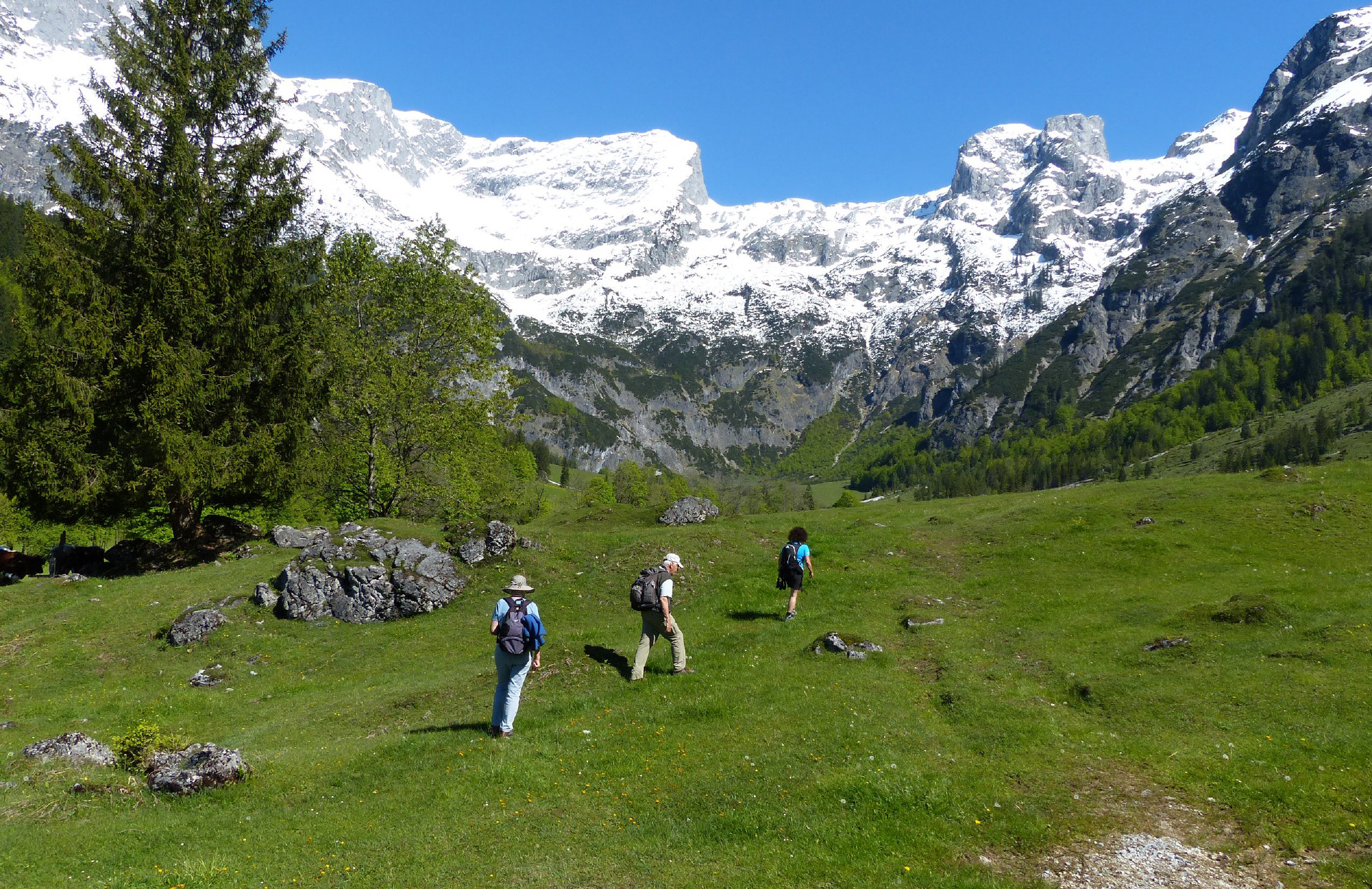 Unsere kleine Wandergruppe hat den Ausgangspunkt der Tour erreicht. Hier endet im Tal die Straße des Dorfes Werfenweng. Jetzt liegen nur noch Almen mit stoisch Gras fressenden Kühen vor uns sowie drei Kilometer entfernt die schroffen Felshänge vom Tennengebirge. Ein Beitrag von Ronald Keusch [mehr ...]