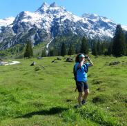 „Die meisten Urlauber bei uns sind es nicht gewohnt, stehen zu bleiben und zu schauen. Jetzt entdecken sie auf der Almwiese eine neue unbekannte Welt“, erzählt Wanderführerin Waltraud. Sie führt auf der Abenteuerreise die Regie. Dort ist die Berberitze, die schon blüht, da die Lichtnelke. Und nicht vergessen, das Fernglas zu drehen, umgekehrt funktioniert es als Lupe, da kann man sozusagen in die Blüte hinein schauen. Und überall auf der Alm wächst jetzt der blaue Enzian.