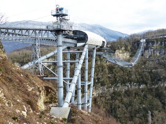 Über der Ahshtyrskaya-Schlucht verläuft die mit 439 Metern längste Fußgänger-Hängebrücke der Welt. Hier ist kann man mit 207 Metern über dem Fluss Msymta den weltweit höchsten Sprung absolvieren. Es werden auch moderate Sprünge am Bungee-Seil angeboten, „nur 69 Meter tief“ oder der „Mega Troll“, bei dem man am Seil über 700 Meter über den Fluss schwingt. „Der Sprung ist absolut sicher“, erklärt der Armenier Sam Dautyan vom Team des Sky-Park. „Jeder kann ihn wagen und macht eine der unvergesslichsten Erfahrungen seines Lebens.“