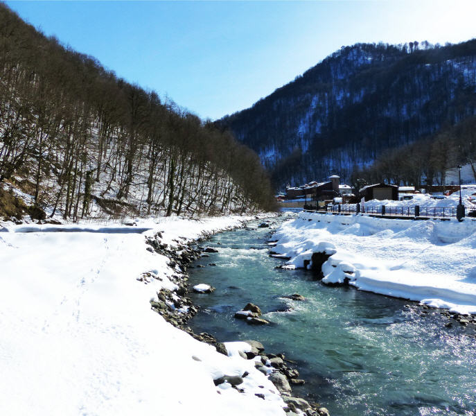 In Sotschi herrscht subtropisches Klima und wenige glaubten daran, hier in der Nähe vom Schwarzem Meer Olympischen Wintersport zu betreiben. Aber das Wunder fand statt, weil die Ausläufer des Kaukasus bis zu 2300 Meter hoch in Skigebiete führten und somit für recht stabile Schneeverhältnisse sorgten.