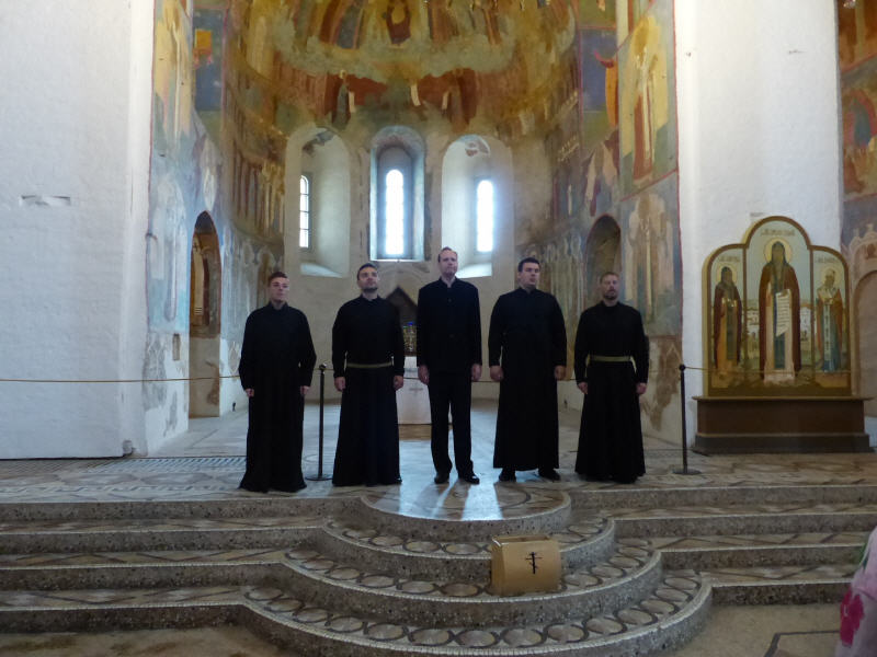 In der imposanten Kathedrale von Suzdal empfangen uns gregorianische Gesänge. Mehrere Frauenstimmen singen mit kräftiger und melodiöser Stimme und mit großer Ausdauer Choräle.