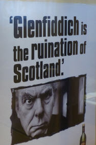 In sehr souveräner und origineller, politisch engagierter Weise werden vom Jahr 1750 bis heute Geschichte und Geschichten der Schotten erzählt. Ein Thema ist der Alkoholismus als Volkskrankheit unter der damaligen Arbeiterschaft Glasgows. In einer Kampagne von Alkoholgegnern vor hundert Jahren wurde auch auf einem Plakat der bedeutungsschwere Satz geschrieben:“ Glenfiddich is the ruination of Scotland“. Es ist glücklicherweise anders gekommen, wie wir heute wissen.