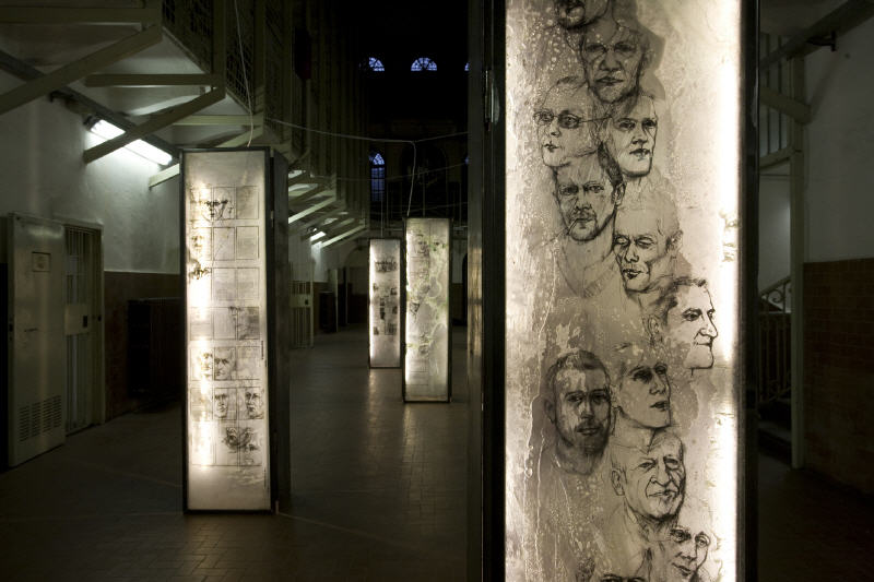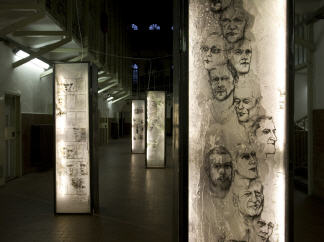 Bildunterschriften: Le Città Invisbili_Dolors (Detail) | PERCORSOGALERA (2009) installation 7 lightboxes 200 x 50x30cm silkscreening on epoxy resin, iron | PERCORSOGALERA (2009)_ silkscreening on resin_Detail