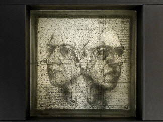 Bildunterschriften: Le Città Invisibili, Installation view, Berlin Art Projects, Berlin 2012 | Le Città Invisibili, La Maschera (Gorka), 2012. silkscreenin on glas, iron