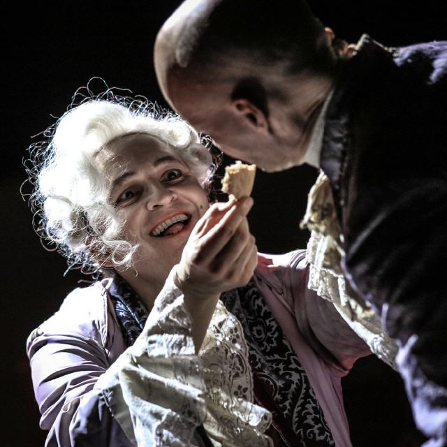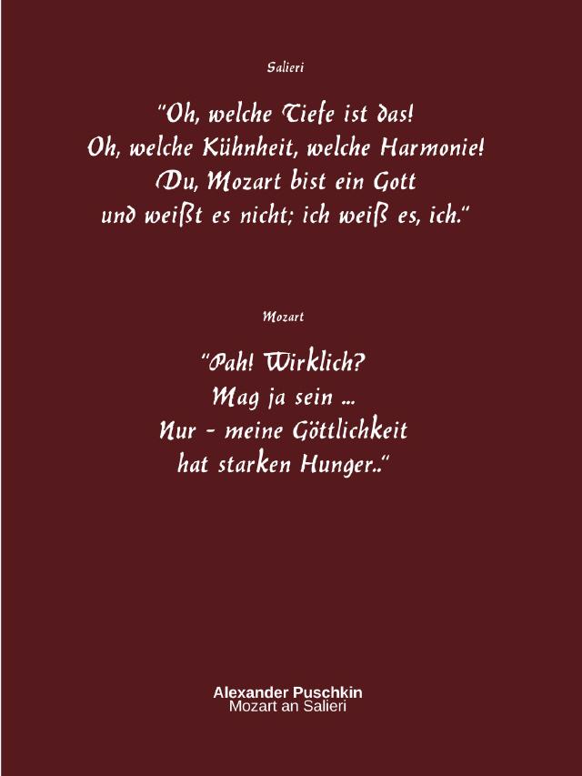 Salieri liebt Mozart, verehrt ihn gottgleich. Mozart pfeift auf Gesetz und Form, agiert aus überbordender Kreativität ohne Zweckmäßigkeit und Berechnung - deshalb muss er sterben (und bleibt dennoch unsterblich).