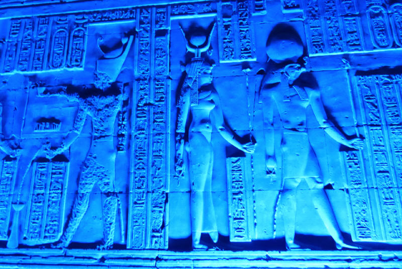 Das Fluss-Schiff erreichte die kleine Stadt Edfu. Die Kleinstadt mit 40.000 Einwohnern ist durch einen der besterhaltenen Tempel bekannt, den Horus-Tempel errichtet im 3. Jahrhundert vor Christus. Hier erwartet die Touristen seit Jahren eine Überraschung, die an diesem Abend extra für die Gäste aus Deutschland um Mitternacht organisiert wurde. In einer Kavalkade von Kutschen mit je zwei Insassen fuhren wir vor Mitternacht an die Stadtgrenze von Edfu. Inmitten der Mauern des historischen Tempels erlebten wir ein Stück 3000 Jahre altes Ägypten in einer Ton & Licht Show.