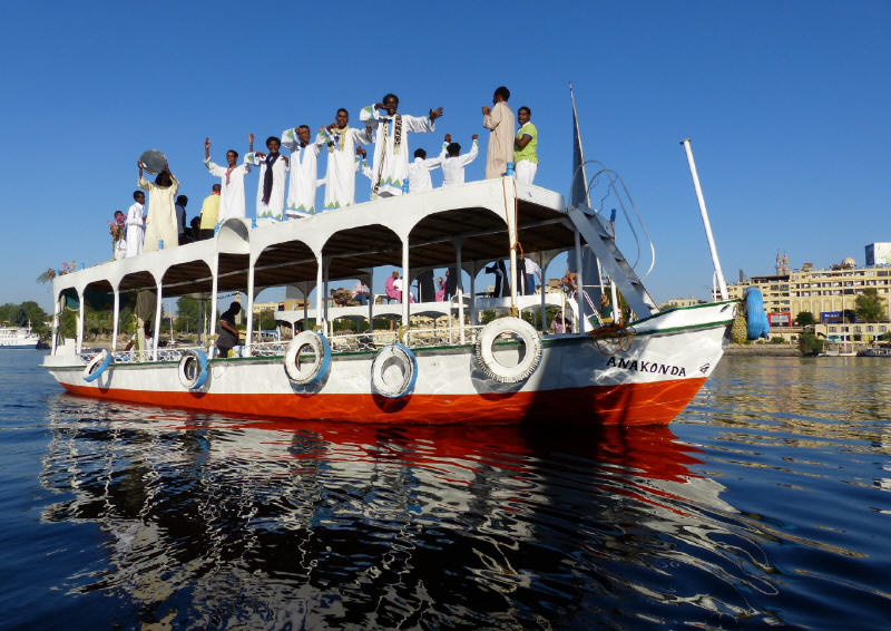 Nil-Landschaft - Begrüßung mit Musik auf dem Nil - Begrüßungs-Tänze in Assuan