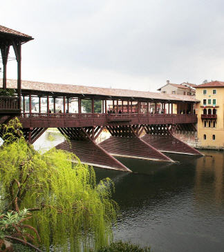Dort beauftragten 1569 die Bürger der Stadt Andrea Palladio damit, ihnen eine neue Brücke über die Brenta zu bauen. Die alte aus Stein hatte gerade einmal sechs Jahre gehalten, dann wurde sie von einem gewaltigen Hochwasser hinweg gespült. Das war der Grund, warum die Bürger einen ersten Entwurf aus Stein verwarfen. Stein sei einfach zu starr, meinten sie, es mit dem Fluss aufzunehmen.