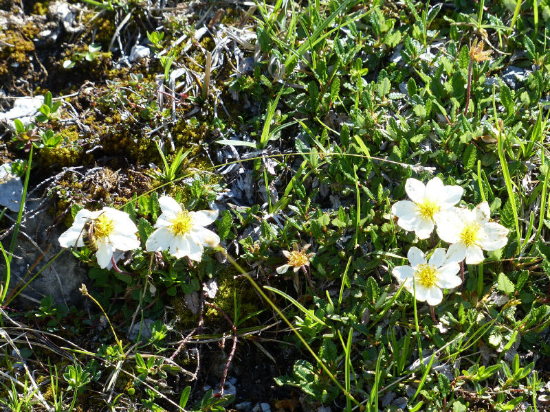 Jetzt gibt es etwas zu riechen. Waltraud verteilt Blätter der wilden Minze und daneben wächst wilder Thymian. Die Route führt uns weiter Richtung Talschluss, die überall weidenden Kühe haben für uns ausreichend Almblumen stehen lassen, das zarte violette Alpenleimkraut, das Brillenschöttchen, den Silberwurz, blaue Kreuzblümchen, den Schusternagel und den Wacholder, ....