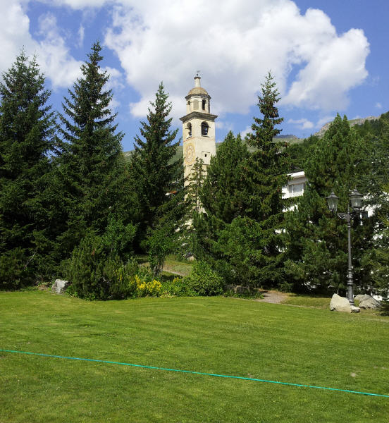 Nur wenige hundert Meter vom „Monopol“ entfernt, wurde vor zehn Jahren die längste Rolltreppe der Schweiz hinunter zum See in Betrieb genommen. Ganz in ihrer Nähe steht der erst vor zwei Jahren restaurierte „schiefe Turm“ von St. Moritz. Sein Name soll hier an der italienischen Sprach-Grenze - wie es heißt - ein wenig an den Namensvetter von Pisa erinnern. Einheimische Spötter jedoch behaupten, dass sich der Turm vor dem vielen Geld der reichen Gäste in St. Moritz beugt.
