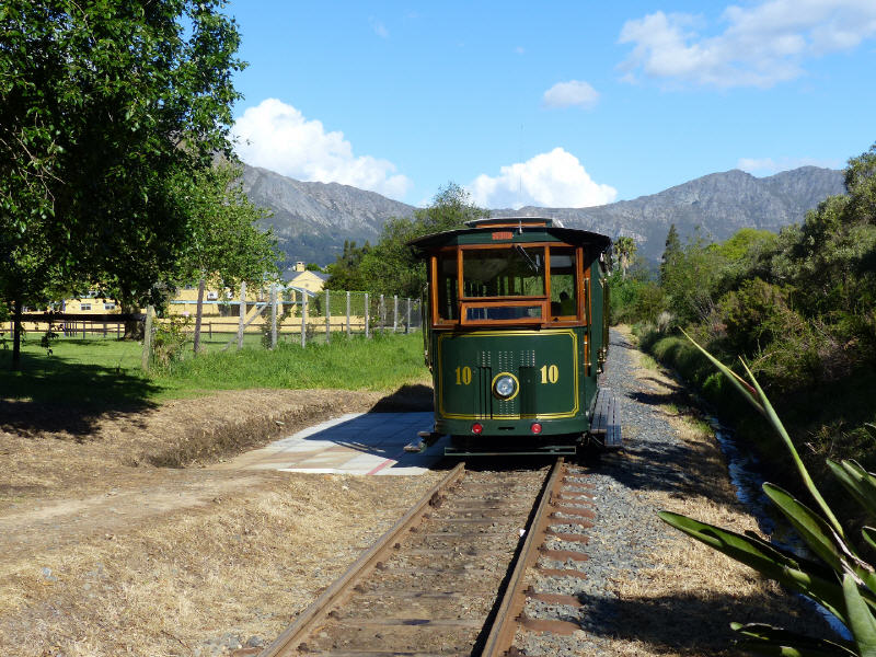 Der bequemste Weg für die Besucher, in der nahen Umgebung von Franschhoek zu den ältesten und berühmtesten Weingütern Südafrikas zu gelangen, sind so genannte Weinrouten. Nach dem Hop-on Hop-off Prinzip von Sightseeing-Bussen in Großstädten können die Fahrgäste an Stationen der einzelnen Weinresorts aussteigen, Weine probieren, in den Weingütern spazieren gehen und zum nächsten Weingut fahren. Seit zwei Jahren werden zwei unterschiedliche Weinrouten eines Busses noch durch eine Wein-Tram ergänzt. Dazu haben die Weinbauern im Franschhoek-Valley Teile einer 1904 eröffneten Bahnlinie durch das Tal samt der offenen Brill-Tramwagen wieder flott gemacht (siehe im Bild oben). Zur Freude der Touristen zuckeln nun mit gemächlichen 18 km/h Geschwindigkeit die mehr als hundert Jahre alten Wagen auf Gleisen durch die Weinfelder.