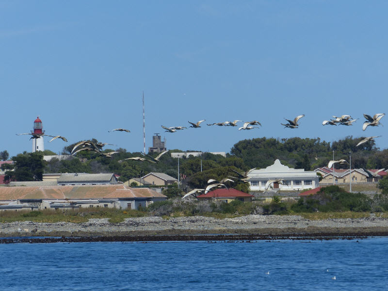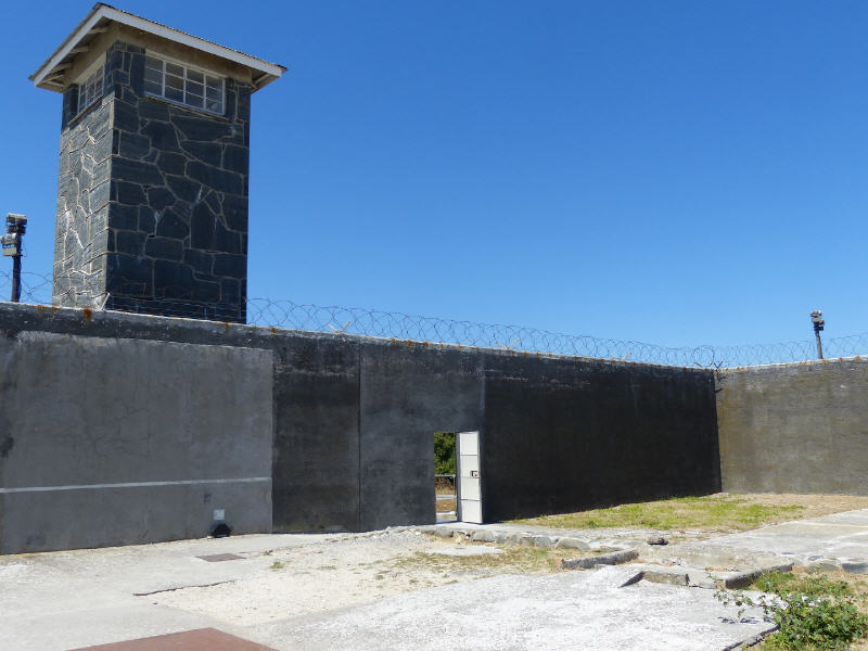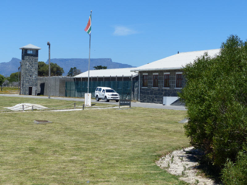 Nach einer halben Stunde Fahrt ist der Inselhafen Murrays Bay erreicht. Hier erwarten Busse die Besucher, um sie auf der 3,5 mal 1,5 Kilometer großen Insel zum früheren Gefängnisgebäude zu bringen, das seit 1997 als Gedenkmuseum besichtigt werden kann. Im Bus gibt ein farbiger Guide erste Informationen über die Insel im lockeren und souveränen Tonfall. So verweist er auf die Pinguin-Kolonie und meint lakonisch, das sei ein positives Beispiel und Symbol des Zusammenlebens von Schwarz und Weiß.