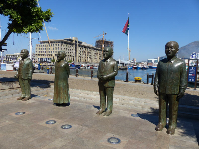 Wenn die Fähre mit den Touristen Robben Island verlässt, offenbart sich bei sonnigem Wetter eine bezaubernde Sicht auf die Bucht und den Tafelberg von Kapstadt. Ganz in der Nähe der Anlagestelle der Fähre wurden vor zehn Jahren die Skulpturen von den vier Friedensnobelpreisträgern des Landes eingeweiht. Es sind Albert John Luthuli, Stammesführer der Zulu und Vorkämpfer des ANC im Afrikanischen Nationalkongress, Desmond Tutu, ehemaliger anglikanischer Erzbischof in Südafrika und Apartheid-Gegner, sowie Frederik de Klerk und Nelson Mandela als Wegbereiter des friedlichen Übergangs von der Apartheid zum demokratischen Staat Südafrika.