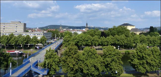 Nur wenige hundert Meter vom St. Johanner Markt entfernt, immer die Mainzer Straße entlang, ist der Besucher schnell am Ufer der Saar. Hier trägt die Brücke noch den Namen des preußischen Kanzlers Bismarck, denn das Saargebiet war vor mehr als hundert Jahren noch Industrieprovinz von Preußen. Im Sommer sind die Uferwiesen der Saar bevölkert von vielen jungen Leuten. Der große Freiluft-Biergarten nennt sich Ulanen-Pavillon und in den angrenzenden Ausflugslokalen wird kein bayrischen Weizenbier wie im preußischen Berlin, sondern eines der vielen selbstgebrauten Weizenbiere wie das Walsheimer getrunken.