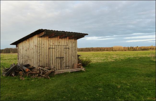 Holzhaus mit Storch