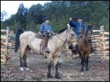 Sie sind im Resort als Ovejeros angestellt, so heißen die Gauchos in Chile. Sie kümmern sich um die kleine Schafherde und um ein Dutzend Kühe und Pferde, aber auch um das übrige Vieh einschließlich Hühner. Sie hacken das Holz für die Kamine und bestellen ein paar kleine Felder mit etwas Gemüse und Kartoffeln - alles für die Gäste. Doch die Tracht von Arcel hat mit dem Erscheinungsbild eines Bauern und Hausmeisters wenig zu tun. Er hat ein Poncho übergeworfen, auf dem Kopf sitzt eine Reiterkappe und er trägt fast kniehohe hellgelbe Lederstiefel, die mit Mustern versehen sind und natürlich Sporen. Am Sattelknauf hängt das schlichte Lasso, eine Reitpeitsche und eine Unterarm lange Machete. Ein wenig will er den Touristen schon etwas von dem Bild vermitteln, was sie aus der Werbung kennen, des freien, knallharten Gaucho in den Weiten von Patagonien. Und natürlich will er den Touristen Reit-Unterricht geben und mit ihnen Wanderungen zu Pferde unternehmen.