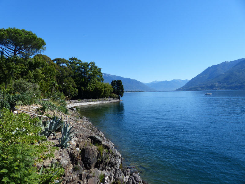 Zurück in Locarno, dem bella Italia in Helvetia, folge ich einer Empfehlung des Schweizer Eisenbahners Ursin Nett, von der Schiene doch auch einmal aufs Wasser umzusteigen. Eine von vielen Schiffsverbindungen auf dem Lago Maggiore bringt mich zur Insel Brissagio inmitten des Lago Maggiore. Auf der Insel ist ein Botanischer Garten mit vielen kleinen Wegen angelegt. Auf unterschiedliche Ebenen sind exotische Bäume und Pflanzen angepflanzt. Und rundherum beeindruckt mich das tiefdunkle Blau des Lago Maggiore. Die wunderschönen Sichten der Schiffstour auf dem Lago Maggiore - da hat der Eisenbahner Recht - können mit denen der Bergbahnen durchaus konkurrieren.