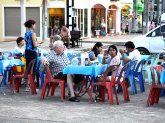 Hauptort der Region ist Takua Pa, ein kleines Städtchen von 20 000 Einwohnern. Links und rechts der Nationalstraße 4 werben Souvenirläden und Massagesalons um Touristen, ein Zahnarzt bietet seine Dienste an, die Apotheke preist Viagra in höchsten Tönen. Alle paar Meter verbreiten Straßenküchen ihren verführerischen Duft.
