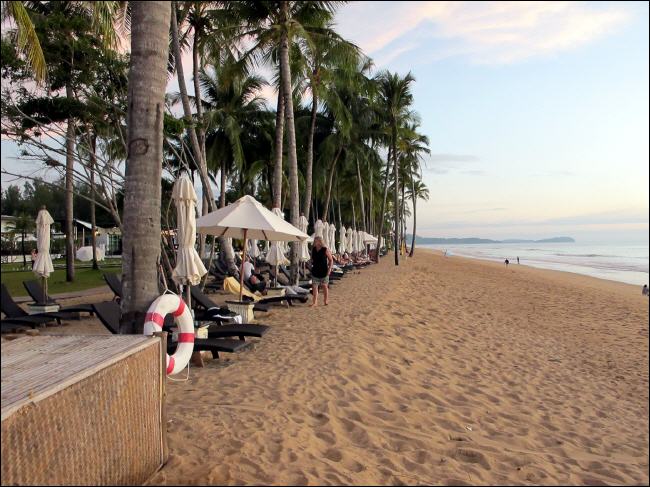 „Von den zahlreichen Arten in Thailand sind aber nur die Kobra und die Kettenviper giftig“, setzte er hinzu. Beruhigend. Ebenso wie die rauschende Brandung der Andamanensee, eines Randmeeres des Indischen Ozeans. Langsam stellt sich Urlaubsgefühl ein. Man genießt den Strand und die Palmen von Khao Lak. Hinter diesem Namen verbirgt sich kein Ort, Khao Lak ist ein kilometerlanges Urlauber-„Freigehege“ mit feinen Sandstränden, Hotelanlagen und Restaurants.