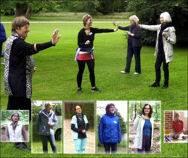 Qigong im Park - eine Collage mit den therapeutischen Begleitern. Siehe auch Flyer zum Download in der rechten Kontextspalte (Bildlink "Qigong im Park") |