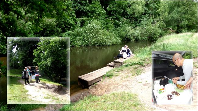"Erspüren" eines Bausteines mit Klangschalen. Siehe auch Flyer zum Download in der rechten Kontextspalte (Bildlink "Qigong im Park") |