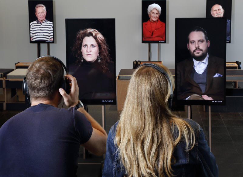 Die Videoinstallation zeigt, wie die Erzähler als Zuhörer mit ihrer eigenen Geschichte konfrontiert und zum Nachdenken angeregt werden: Sie lachen und lächeln, sind stolz oder tief berührt über das Erzählte. Besucherinnen und Besucher der Ausstellung «21» erleben beides gleichzeitig: sie hören die Erzählungen und sehen die Reaktionen der Erzähler– intime Momente der Erinnerung entstehen.