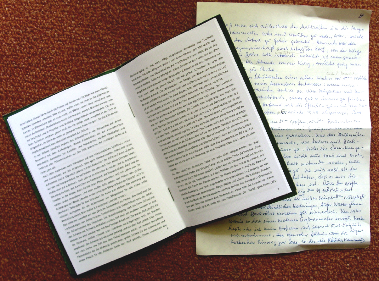 Reizvoll ist es auch, handschriftliche Texte einzuscannen und daraus Buchhüllen zu kreieren, die kleine Lebensgeschichten enthalten. Und wenn es nur eine ganz kleine Geschichte aus der Kindheit.