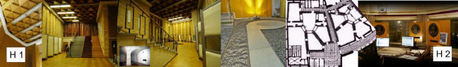 Fotos: © Elisabeth Heller - aufgenommen 2010 und 2015 | ein Collagenfoto © Christian Henke | historische Fotos entstanden kurz vor und nach der Rundfunkabwicklung | Quelle der Kartenskizze unten: Hausarchiv | Überblicksskizze Block B in Anlehnung an eine Skizze aus dem Buch "Der Raum ist das Kleid der Musik" von Gerhard Steinke und Gisela Herzog, Seite 23