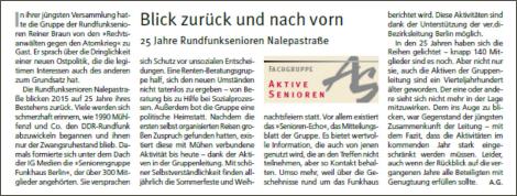 Ein von Wolfhard Besser zur Verfügung gestellter Artikel aus der Mitgliederzeitung des Fachbereiches Medien, 24. Jahrgang Nr. 5, Kunst und Industrie Berlin-Brandenburg, Dezember 2014: