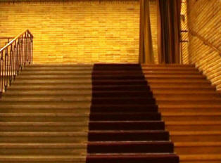 Informationen zu den Bildern von links oben bis unten rechts: Erdgeschoss mit Überbleibseln des Musikarchivs | Schränken, die Musiktonbänder beherbergten | Ausgang Richtung Block B | Aufzüge | Kultursaal, der derzeit u. a. als Kulisse für die Anwaltsserie "Edel und Starck" diente | Etagen des A- Blocks, die 2003 u. a. zu den Funkhaus-Drehorten des Polizeirufs "Verloren" gehörten | Blick aus der 7. Etage rüber zu Block B | Block A: Treppe runter zur einstigen Kantine (vom Zugang zum Kultursaal aus) | Eingang Block A | Mitte: Übergang von Block B zu Block A