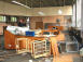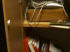 Informationen zu den Bildern von links oben nach rechts unten: Blick durchs Fenster in den Hörspielbereich | offener Schrank mit alten Bändern | zerstörte Technik | verschiedene Böden wie Kies, Steine, Sand usw. | Bild Mitte: Treppe mit verschiedenen Belägen für Erzeugung von Geräuschen